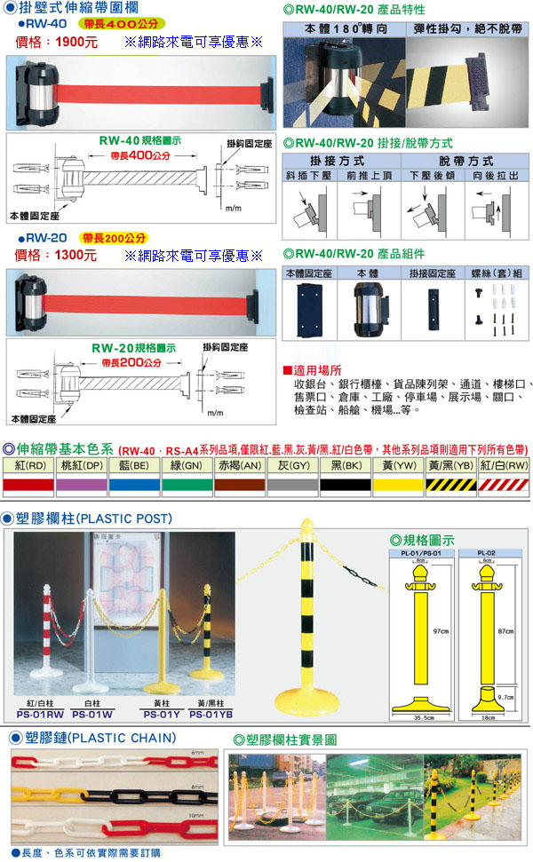 掛壁式伸縮帶圍欄